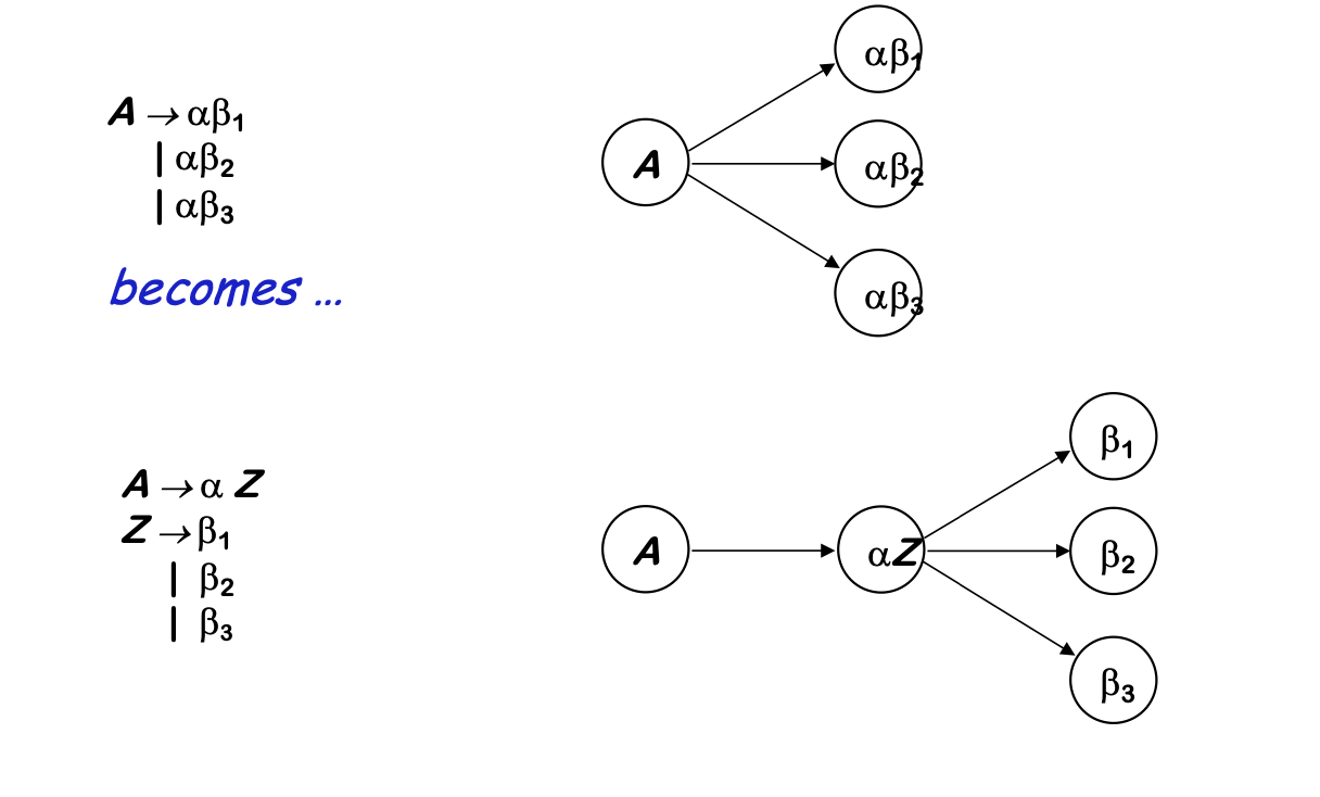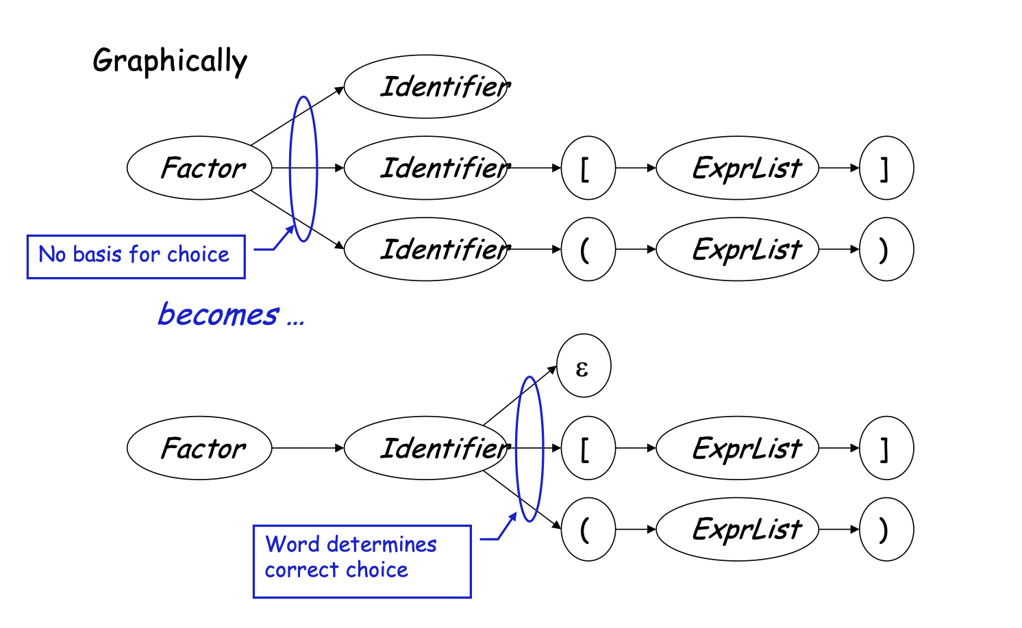 Question: By eliminating left recursion and left factoring, can we transform an arbitrary CFG to a form where it meets the LL(1) condition? (and can be parsed predictively with single token look ahead?)