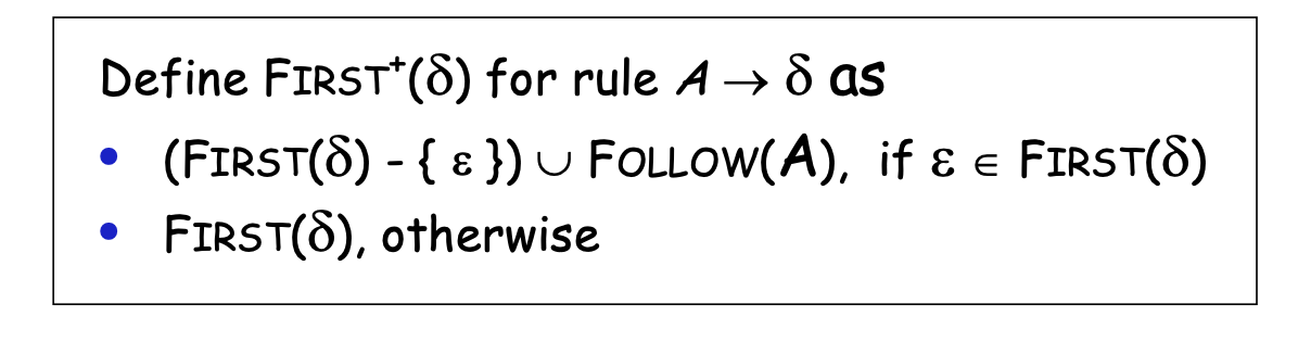 If A -> π and A -> π and π β FIRST(π), then we need to ensure that FIRST(π) is disjoint from FOLLOW(A), too