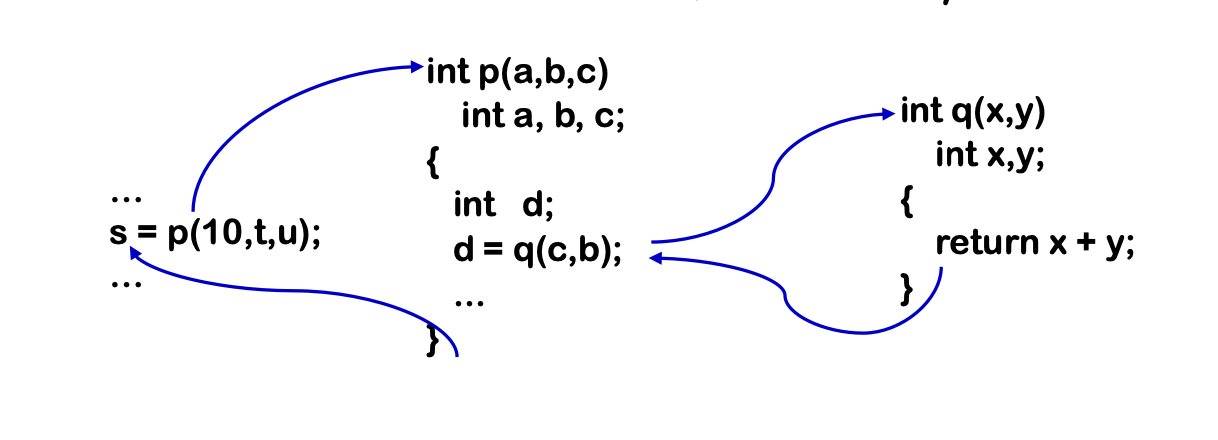 All these are established by a carefully-crafted system of mechanisms provided by compiler, run-time system, linkage editor and loader, and OS