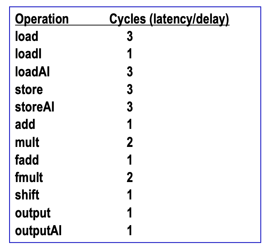 Given a code fragment (basic block) for some target machine and the latencies for each individual operation, reorder the operations to minimize execution time